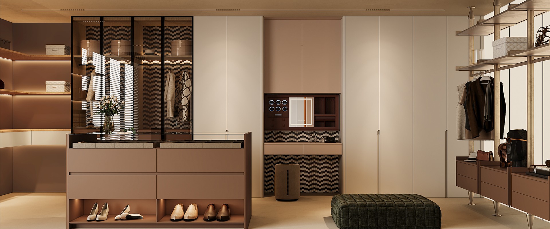 产品包含中西厨空间、亲水空间、负一层空间、衣帽间、儿童房、社交空间六大系统的门墙柜一体化定制,真正实现了零醛、安全、健康的大家居蓝图。